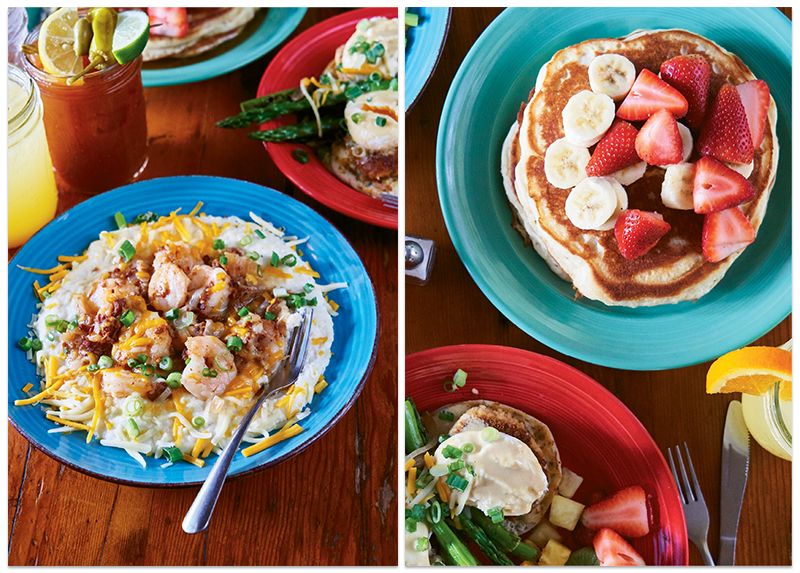 Morning-after brunch lines can be long at this quaint eatery, but mimosas and hot coffee help speed the clock. Pretty soon, you’ll be digging into a smothered breakfast burrito, loaded huevos rancheros, decadently glazed cinnamon rolls, or creamy stone-ground grits with thick slabs of bacon. The Lost Dog’s “Folly Benedict”—poached eggs perched on side-by-side shrimp and crab cakes, drizzled with spicy hollandaise—was a regular special so popular it became a daily staple. Even canine guests get their own water bowls.