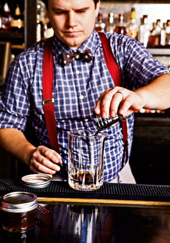The results? A decadent cake, lush with layers of rich apple butter and a hint of whiskey in the glaze, perfectly matched by Raya’s sling. For the drink, he combined two bitter and two sweet components with the pepper and spice of the cask-strength spirit. “Each is aggressive on its own,” says Raya, “but together, they balance each other out.”