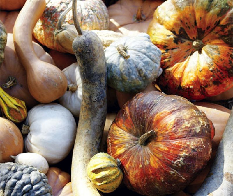 Grow: Ready to sow your own seeds? Cultivating pumpkins here is difficult, certainly, but they can be a viable crop even in small home gardens. First, we recommend choosing seeds based on what you plan to do with the pumpkin—whether you’ll use for display or for cooking. All pumpkins require anywhere from 70 to 120 days to mature, so it’s best to lay seeds between July 1 and 15 for coastal regions and June 15 and 30 for central parts of the state, to ensure fruit will be ripe by autumn. Plant on raised beds about three feet apart (to promote drainage) and water liberally to encourage deep rooting. Avoid getting leaves or fruit wet. And because humidity is often the pumpkin grower’s biggest hurdle, use organic mulch of pine or wheat straw to protect the fruit from wet ground. Old shingles also work well, as plastic or paper materials only trap moisture.