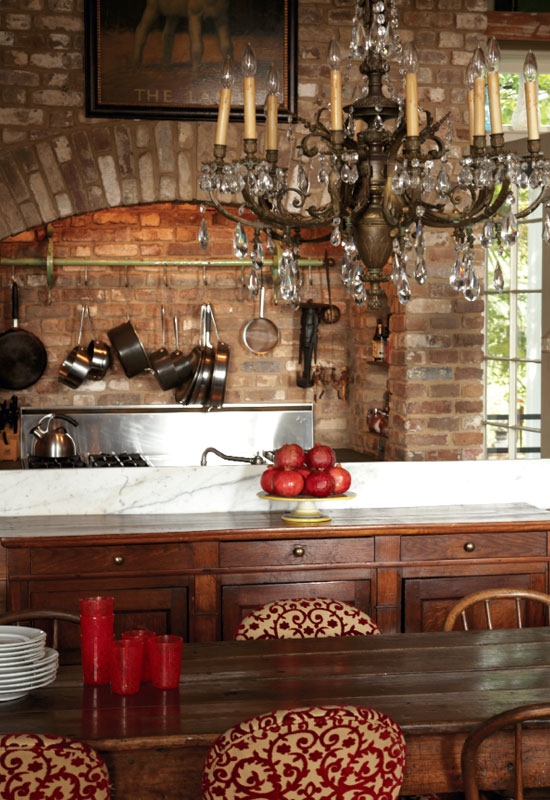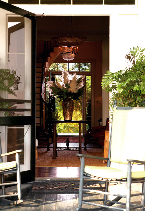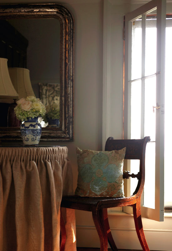 Muffie Faith has mastered the fine art of surprise. She doesn’t jolt with avant-garde or surprise simply for the sake of surprise—she’s too smart for that. She’s more sophisticatedly subversive: Muffie pulls you in with classic style then catches you off guard with fresh, playful detail. That’s part of her brilliant formula with ESD (short for Elizabeth Stuart Design), her eponymous home decor boutique; there, you never know what you might find—perked-up antiques, mod lamps, sparkling vintage chandeliers—only that it will be fabulous. It’s also what makes her residence a homey haven of polished and perfected unpredictability. The approach to the Faith home itself entails an element of oh wow. Tucked into the quiet end of Haddrell’s Point in Mount Pleasant’s Old Village, the house sits on a high bluff hidden from the street. Trees obscure the initial view, so driving or walking up the handsome bluestone driveway feels like watching a theater curtain open. Gabled grandness and cottage charm meet under mature, glossy magnolias and imposing live oaks. Rising tall from an old brick foundation, this is a quintessential white-framed, black shuttered, tin-roofed Southern showstopper. In fact, Muffie herself was taken aback when she first encountered the property some 13 years ago, back when she and her husband Bob were living in Houston, Texas, with their two young children. Muffie, a Columbia native and College of Charleston grad, found herself pining for home. “I’m the youngest of eight, and I’ve got a huge clan here. I always imagined moving back to South Carolina,” she says. During one Charleston visit, she was checking out real estate, thinking a summer home might cure her Lowcountry longings, when realtor Chuck Sullivan showed her a derelict old cottage that’d been on the market for years. Nobody dared tackle it. “It was June, all the magnolias were in bloom; I walked in and my heart started racing,” says Muffie, talking a mile a minute in her typical high-octane mode. “It was like a spook house—a total wreck—but it had great bones and these amazing grounds. My imagination went crazy.” In what is now the dining room, Muffie pried a hefty two-by-four off a door to reveal a spellbinding harbor view. “Oh my gosh—it was unbelievable.” Even so, it took another two years before her husband even saw the house. Finally, she and Bob were in town together, looking at various Charleston properties. “I’m a great salesperson,” says Muffie. “I saved this one for last.” Her strategy paid off. Despite the fact that they’d just put a house under contract in Austin and that this 1850s-era Gothic Revival shambles needed an extensive overhaul, Bob, too, was smitten. “We just have to find away to make it work,” he said. Resurrection Muffie, then expecting her third child, engaged the help of her former classmate and longtime pal, Beau Clowney of Beau Clowney Design, and contractor Richard “Moby” Marks to begin spiffing up this quaint, three-over-three room cottage that had once served as a Civil War hospital and a sea captain’s house. Their initial plan to keep it small and use it as a second home, however, shifted after Bob decided to move his business to Charleston. “Heck, if we can raise our children in an idyllic place like the Old Village, why not?” the couple reasoned. So in midstream, the moderate renovation morphed into a full-scale resurrection, transforming the cozy digs into a bustling family home. “The existing structure was such a gem, we were afraid of messing it up,” says Clowney, who had worked with Muffie previously on two Texas renovations. “In my view, when it’s an old building, there are right and wrong ways to go about it. The worst thing you can do is transform the original structure into a stretch limo.” So Clowney and a very pregnant Muffie commenced their planning. “We spent hours sitting on the roof eating egg salad sandwiches, dreaming this place to fruition,” she recalls. Their goal: to make a significantly sized addition look like it evolved over time, retaining the character of an old house. The solution: create a new “kitchen house” to bridge the old structure with the new and serve as an epicenter for this on-the-go family; vary roof lines to give deference to the original structure; and marry the interior and exterior spaces throughout, capitalizing on the magnificent grounds, majestic trees, and harbor views. Developing a master plan for the 2.7 acres was integral to the project, notes Clowney, who worked with landscape architect Sheila Wertimer and Muffie to create garden “rooms” and courtyards that had direct correlations to the interior spaces. The kitchen opens to a romantic wisteria arbor toward the back, and a courtyard facing the water. “I love the outside more than the inside,” admits Muffie, a one-time florist who grew up with a dream garden where she knew every shrub, every tree. “Combining texture and color is all part of design.” The back lawn is gracefully terraced toward the water, and off to the right, tropical plantings veil the swimming pool. “I wanted to create an entrance through the hedge to this whole other oasis, this surprise,” says Muffie, who designed the exotic poolhouse as a “Thailand meets Pawleys Island" outpost. “Muffie has great taste and talent, such a keen design eye,” says Clowney. “She had very real expectations for every material and every finish. When a client knows what they want, the work is not about me or my design idea, but about helping them achieve their vision and parlay their personality into the project.” Perhaps this is why Muffie and Clowney collaborate so splendidly: her approach to design is also about infusing a space with personality and self-expression. “Home should be about what moves you, what makes you comfortable and happy, not about stepping into the illusion of someone else’s life,” she says. It