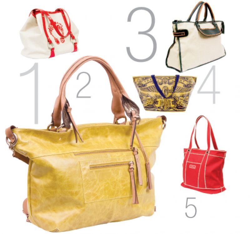 1. For those days when you want to kick off your Christian Louboutins and embrace the barefoot summer spirit: the linen “Melides” tote, ashine with patent calfskin accents in the designer’s signature hue. $795 at Bob Ellis
