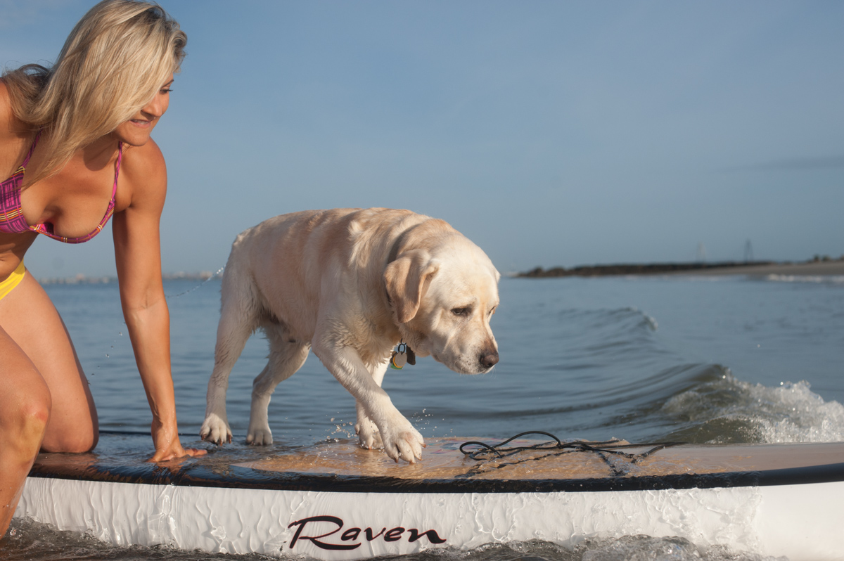Local fitness trainer Stephanie Keenan gets lots of looks as she paddles Shem Creek, and that’s likely due both to her impressive physique and the pretty yellow English Lab calmly lying on the back of her paddleboard. “He’s always been super calm,” says Keenan of Cozmo, who she describes as both “Eeyore-like” and “a big, super-chill toasted marshmallow.”