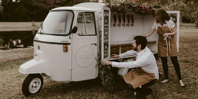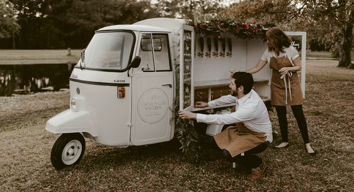 Shipped all the way from the Italian countryside, then renovated by Silverside Design, this petite, vintage Piaggio Ape cart boasts six taps ready to be filled with Champagne, sparkling wine, beer, or kombucha. Event planners choose the drinks, and Chug-a-Lug takes it from there—picking up the supplies and arriving at the party in plenty of time for the toast. chugalugwagon.com