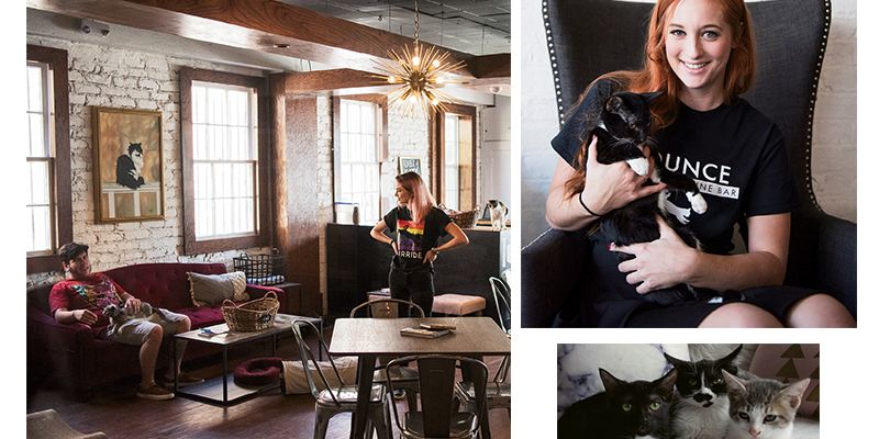 Photographs by (2) Margret Wood & courtesy of (three kittens) Pounce Cat Cafe + Wine Bar