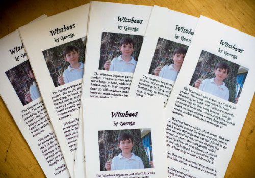 After that milestone, George picked up on a few things: Blue bugs sell best, people like to know that he made them himself, keeping the price low moves product, and an assembly system (he divides parts into Tupperware and muffin tins) helps keep manufacturing time down to three minutes per bug. To date, George has sold about 500 Wimbees (to galleries, to Hampton Park Plant Swap attendees, to Grace Church’s Piccolo Spoleto Tea Room, and to teachers and fellow students) and says he plans to keep up with the business, because “they’re fun to make—and I earn a lot of money, too.”
