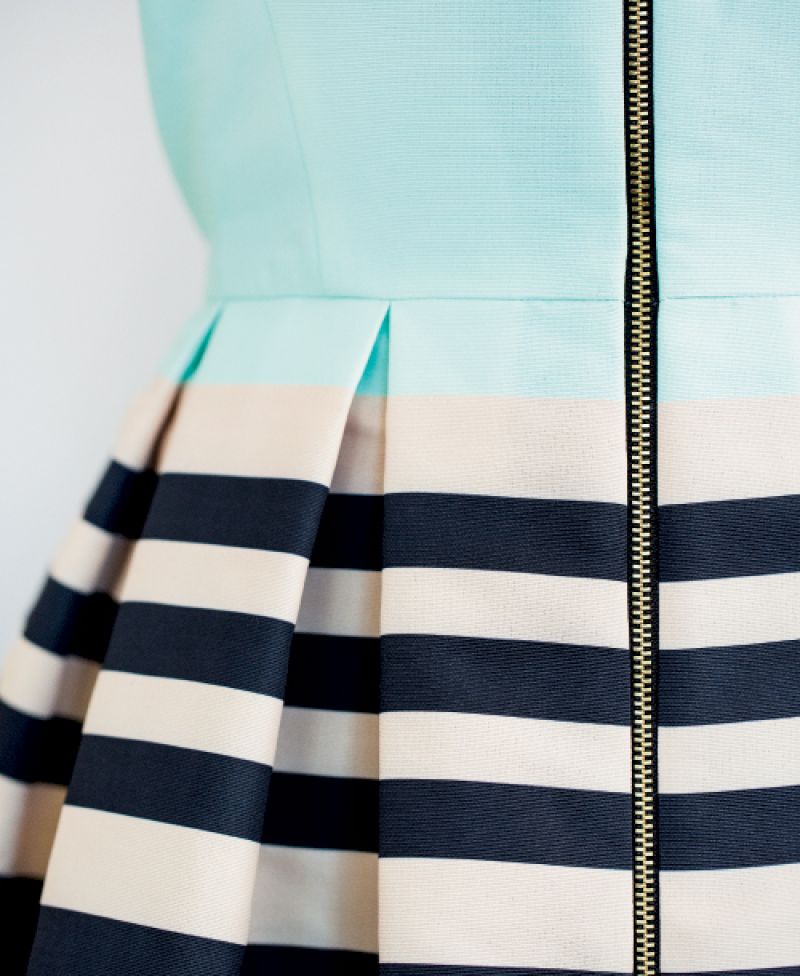 “As you can see, it’s not always glamorous,” says Carter, a North Carolina native and graduate of UNC Chapel Hill and New York’s Fashion Institute of Technology, who launched TROUBADOUR in Charleston five years ago after stints designing for J.Crew and Madewell. Since that 2009 CFW Emerging Designer show, Carter has been fine-tuning her line of bold prints-meet-Audrey-Hepburn-glam apparel, with sales growing each season. “I had this romanticized vision of what having my own label would be like, and here I am cutting thousands of pieces of string. You do what you have to do,” she adds.