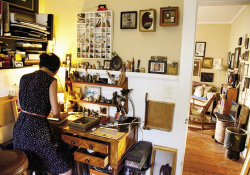 Hirona Matsuda’s friend recently brought her an old sewing machine table salvaged from a flea market junk pile. The 27-year-old will slowly take it apart, setting pieces aside for a project she may not start for months. Prone to traipsing downtown streets in search of ragged wood, furniture knobs, glass jars—any discarded bauble that she can appropriate into a miniature scene—the assemblage artist says, “I’ve always collected things, even when I was little. Now my art is about construction and deconstruction, incorporating found objects into nostalgic narratives.”