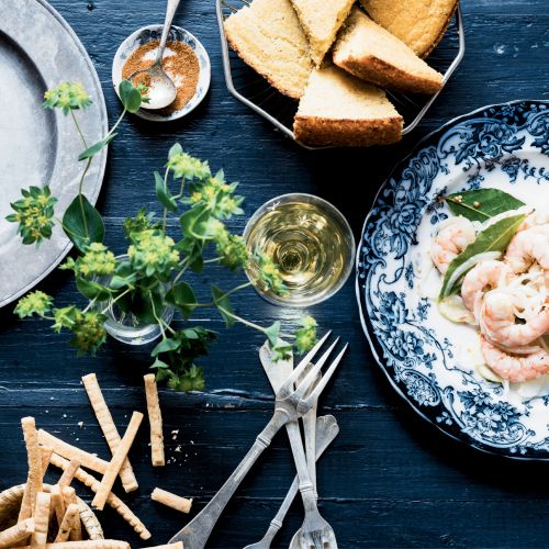Soup’s On: “If there are leftovers, I peel the shrimp, cut the corn from the cob, slice the sausage thinly, then add all to a broth—shrimp stock, duck stock, or tomato juice—for a delicious soup.” —John Martin Taylor