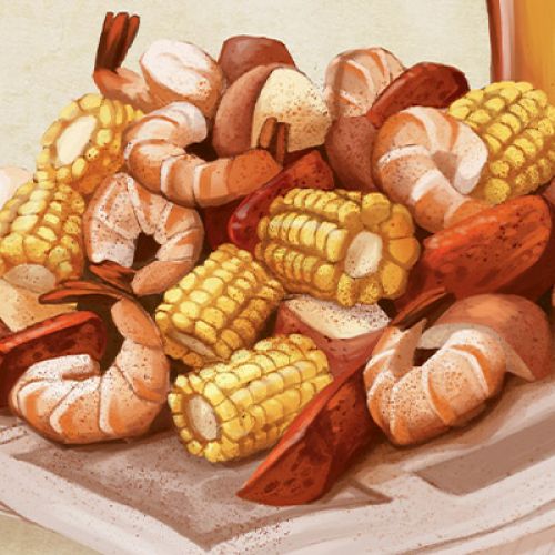 Said to have originated from the Frogmore Plantation area on St. Helena Island near Beaufort, this casual gathering favorite is often called “Lowcountry boil.” John Martin Taylor wrote of his recipe—first published in Hoppin’ John’s Lowcountry Cooking: Recipes and Ruminations from Charleston and the Carolina Coastal Plain (The University of North Carolina Press, 2012)—while living in the Cambodian capitol, Phnom Penh: “Though I left Charleston years ago, Lowcountry cooking remains the foundation of my kitchen. I have made this marvelously simple, fun crowd-pleaser all over the world, including Cambodia for the US ambassador and his family.”