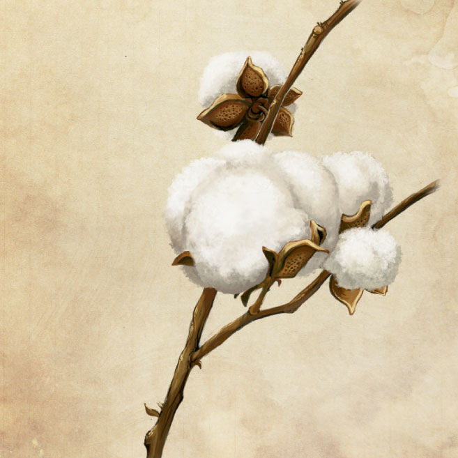 This silky, extra-long-staple cotton (Gossypium barbadense) gets its name from the Lowcountry Sea Islands where it famously flourished, becoming esteemed the world over for its deluxe quality. In the 1780s, it was introduced from the Caribbean to replace the declining trade in indigo, and by the early 1800s, millions of pounds were being exported yearly, sent from Charleston by the shipload to textile manufacturers in the North and across the ocean to England, France, and Europe. The crop brought tremendous wealth to island planters, whose slaves did the arduous labor of growing and preparing it for sale. It’s much less abundant today, but the name “Sea Island cotton” remains synonymous with soft luxury