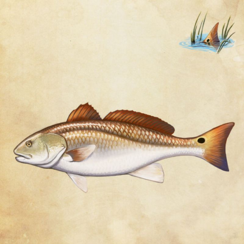 These drum family members are known for “tailing.” Their tails stick out of the water as they feed along the bottoms of creeks, oyster reefs, beaches, and salt marshes. What are they so busily dining on? Adults eat menhaden, spot, anchovies, and blue and speckled crabs, while juveniles go for crustaceans, such as fiddler crabs, as well as smaller fish.