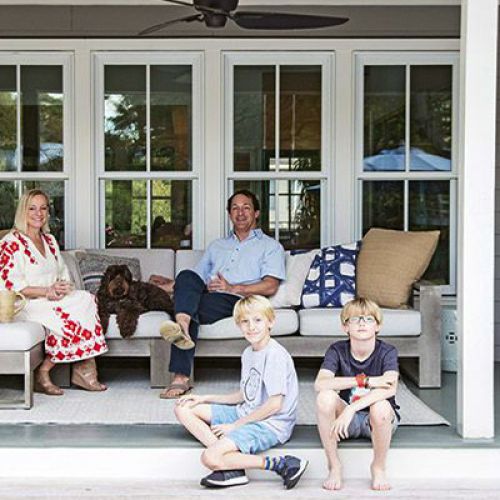 For Leah and Gee Aldridge, time spent at their Kiawah Island vacation home is a blur of salt-and sun-soaked activity.  Over the course of a single afternoon, they might pilot paddleboards, surfboards, and bicycles, while their three teenage children keep busy riding horses, sailing, and shooting hoops ay nearby Night Heron Park.