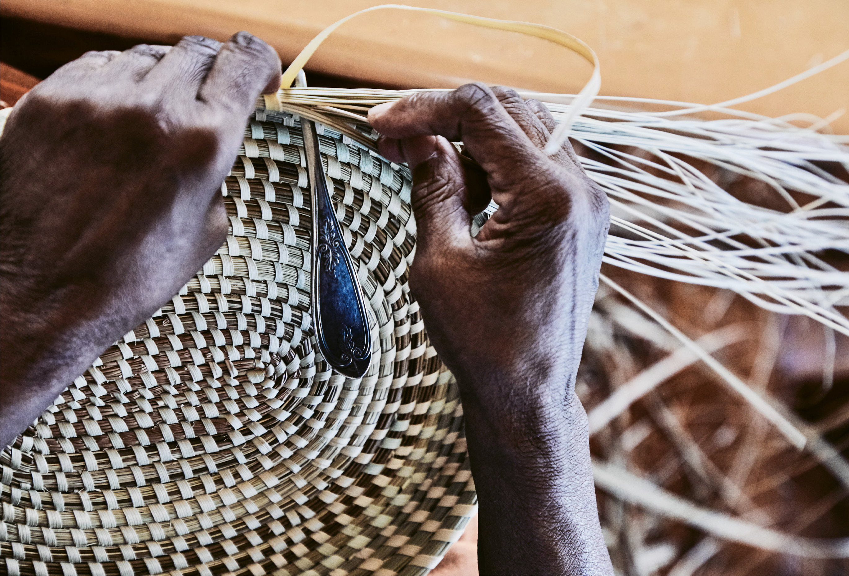 In a culture where smartphones and apps rule, this old-world technology of coiling a basket from nothing but plucked grass, patience, and calloused fingers is still viable and valued, disruptive in its own throw-back way. Think of the basket stands that once lined Highway 17 and those that still dot it—an early iteration of Etsy, a highly innovative, direct-to-market platform. With a deep appreciation of where the tradition rises from and an artist’s vision for where it might yet rise to, Jackson has been an inspired innovator of this age-old craft. So it’s fitting, perhaps, that her baskets will be part of that more recent trend—a pop-up gallery—during Spoleto Festival USA this spring. “It’ll be a new experience for me. I think it will be fun,” says Jackson.