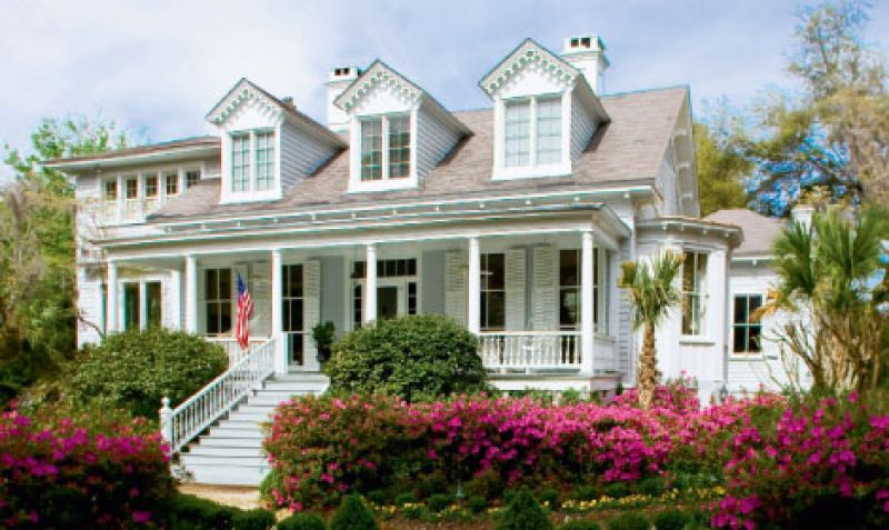 A suburban, lesser known cousin of the famed Drayton Hall and Magnolia Plantation estates, Summerville’s Linwood Inn is the easygoing young charmer of the Drayton clan’s holdings. William Hastie and his wife, Julia Drayton, built the house in 1883 on a plum site—nearly two acres in the center of town—one block from the Summerville train station. For Mr. Hastie, it was an easy commute to work; the first American-made, passenger-carrying steam locomotive (dubbed the “Best Friend of Charleston”) carted him into the Holy City daily and home in the evenings. Meanwhile, Julia’s father, the Reverend John Grimke Drayton, patriarch of Magnolia Plantation, lived out the latter years of his life at Linwood and died there in 1891. The tin-roofed house was built as a two-story clapboard Victorian boasting a central hall plan with a kitchen located in the basement. (Food was brought up to the dining room via a dumbwaiter.) Heart-of-pine floors, triple-sash windows, and period window bays in the downstairs receiving rooms are all original elements. Remarkably, the Hasties’ newly constructed home remained relatively intact when the 1886 earthquake shook Summerville, though the damage it sustained remains a source of interest to seismologists. Glass from bay windows on either end of the house fell in opposite directions, and supporting piers showed curious circular damage, leading some scientists to speculate that the fault line ran underneath the home. A rendering of the structure, along with details of its damage, are included in the 1887-88 U.S. Geological Survey. The Hasties remained at Linwood until 1901, when they took up residence at Magnolia Plantation, making Julia the first woman in the region with a kitchen inside her house. Meanwhile, Linwood spent the better part of the 20th century as a single-family home, though it did undergo some changes. Open-air sleeping porches were probably added around the turn of the century, as Summerville was considered one of the top two locations in the world to recover from tuberculosis. (Most believed that breathing air filtered through the Summerville pines was beneficial to the lungs.) Today, these porches are enclosed sunrooms. A small parcel of land was sold off in the early 1900s, and with it, the carriage house and stable; in the 1920s, an owner built a cottage-style guest house on the back of the property. The current owners, Linda and Peter Shelbourne, bought the property in 1979 before opening a bed and breakfast there 15 years later. The couple has restored the gardens, even adding camellias and azaleas named for the previous owners. Among them? A Camellia japonica dedicated to Reverend John Grimke Drayton.