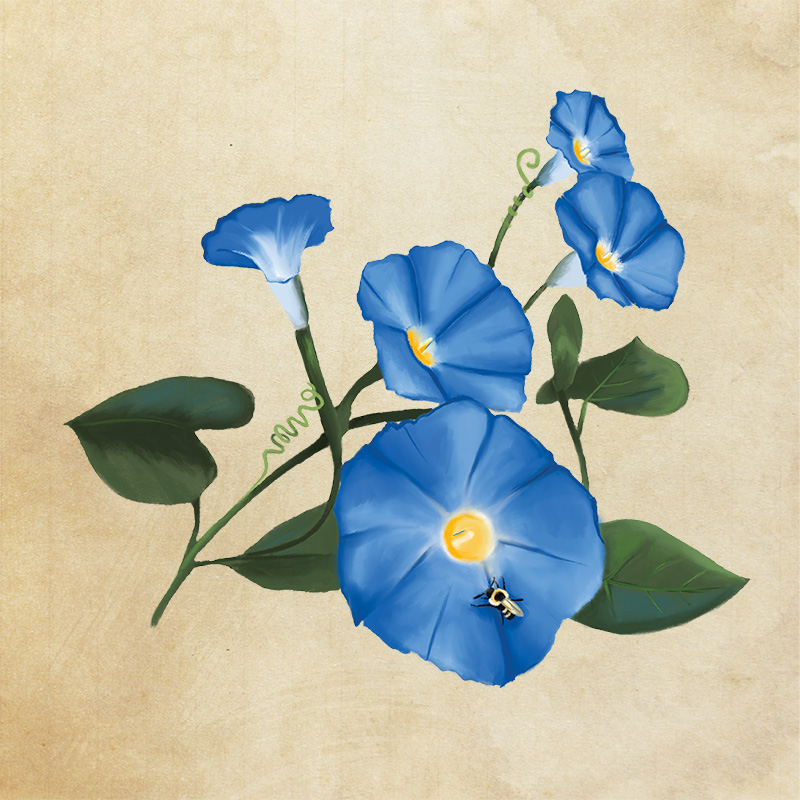 ROOT OF THE MATTER Native Americans historically used the roots, leaves, and juices of Ipomoea for medicines as well as in some tribal rites. Similarly, African cultures, including Gullah people, used the plant as a curative. The powerful “High John the Conqueror” root, which is believed to bring love, luck, and power, is made from morning glory.