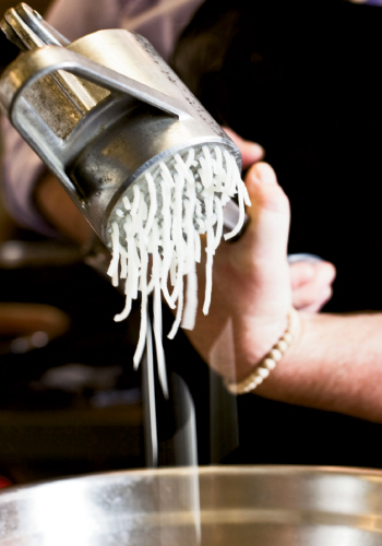 For Perig Goulet, who grew up in Brittany the youngest of five, family meals meant gathering around the table with a boisterous clan of brothers and sisters. “Every day, my mom cooked breakfast, lunch, and dinner for seven people—that’s a small restaurant,” he laughs, recalling her regular ventures to the market for fresh produce, meat, and seafood. “Food like that stays with you all your life.” And while this spirited chef worked in the kitchen of his brother Gwenael’s New York operation; served as a maître d’ on a French naval ship for a year; and managed Il Cortile del Re before opening his cozy bistro, he still warms to the rustic dishes that his mother set before him as a boy. So when we tasked the La Fourchette owner with creating a casual winter menu of French classics, he knew just whose recipe box to open: Maman Goulet’s.