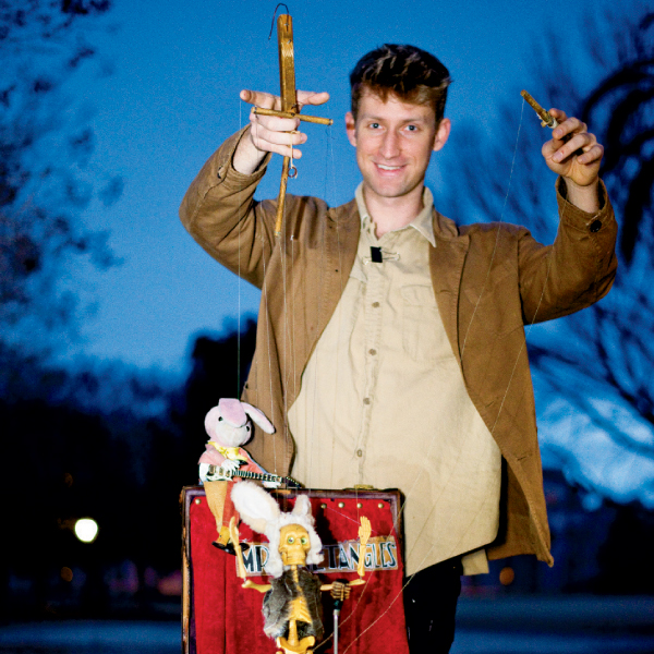 Will Schutze has the world on a string—as well as a nine-inch-tall marionette with a penchant for Al Green. Mr. Bonetangles, Schutze’s rock’n’roll skeleton of a street-performing sidekick, garnered the Texas-born puppeteer a cameo in Jon Favreau’s 2014 film Chef. The actor and director discovered Schutze out in Santa Monica by stumbling across his quirky act on an unassuming street corner. “Most sidewalks are public space we share,” says Schutze, “and we can use this space in many creative ways that remind us we are a community. We trade energy back and forth, and together, we put on a show. Simply put, street performers encourage togetherness.”