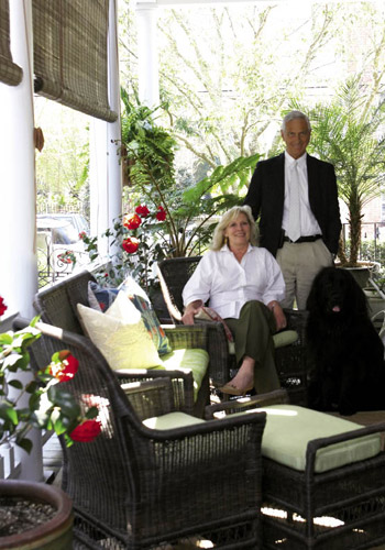 “At heart, we’re city people,” says Sharon Gudas, of what (at least, in part) attracted her and husband Charles, a foot surgeon, to their current slightly-north-of-Broad residence. Here, where the energy of downtown Charleston’s dynamic hub envelops their gracious Victorian, “It’s a real neighborhood, with a versatile group of people,” she says. But their urban affinities were uncovered long before they settled in the Holy City. It was while living in Chicago that the couple first realized a shared love of pedestrian-centered living, with its ample people-watching and short walks to favorite restaurants. Meanwhile, vacations at DeBordieu brought them down South, regular jaunts that ultimately evolved into relocation to Charleston. Once here, it took three different houses on the peninsula before they found—eight years ago—the right one. Edging busy Rutledge Avenue, the circa-1870 residence is a charmer: three stories with a red mansard roof, the dwelling was designed around a side hall plan, which boasts a main entry and thruway to one side, double parlors on the other. Perhaps the best feature, however, was the near-immaculate shape the structure was in when the Gudases bought it, an uncommon find in historic real estate. With the right house in the right condition under their belt, next on tap would be furnishing the downtown gem. “I know what I like, but I’m not always sure how to make it work,” laughs Gudas, who enlisted the help of interior designer Muffie Faith to help refresh the furnishings she had and replace those that needed to go. “I wanted to get away from strictly traditional, but my attempts to introduce contemporary pieces just never seemed quite right.” Greeted at the door by Barney, the Gudas’ giant Newfoundland, Faith suspected she might have some fun on this job. “The house has beautiful bones,” says Faith. “But what I noticed as I got to know Sharon was that her natural warmth and energy weren’t reflected in the decor.” Determined to expose the home’s best features, Faith set out to accentuate its graceful 19th-century architecture, which features eminent windows and ornate moldings. With the exception of one room, the wall colors stayed as is—dynamic earth tones that not only create an all-around serene setting inside the dwelling, but serve to highlight the family’s art collection. Faith opted to reposition many of the pieces, which include paintings by Chagall and vintage French posters, to better blend with their surroundings. She also introduced new lighting to highlight the couple’s favorite works, many of which evoke memories of overseas travels. Turning her attention to the furnishings, Faith addressed out-of-scale furniture, a problem, she says, that is rather common in historic buildings. “High ceilings are something we’re fortunate to have with our old Charleston homes, but in any house, uncommon heights can give the illusion that the room’s scale is larger than it is,” she explains. “Many people turn to oversized pieces, and it crowds the space.” Clearing the way became priority one, particularly when Faith learned the extent to which the couple enjoy entertaining. “We usually have friends over at least once a month,” says Gudas. “Sometimes on the piazza, other times in the dining room—it just depends on what kind of night it is.” The resulting transformation includes an entryway that is simply furnished and unabashedly welcoming, with visitors arriving to a sumptuous settee positioned by a window. “The entryway is your calling card,” says Faith. “We set a tone that tells you you’re going to be comfortable here.” If the unimposing reception area perfectly speaks for Gudas’ unfussy demeanor (particularly when an enormous, shaggy black dog is lolling there), it in no way belies her equally prominent elegant side. And so the main living area is set like a stage, with top billing shared by a baby grand piano and an antique crystal chandelier. Flanked on one side by a hearth and on the other by French doors leading to the porch, bay windows create a naturally illuminated centerpiece. Since the formal dining area is adjacent to the living room, Faith chose a high-backed couch to delineate the two areas, without overcrowding either space. And perhaps the most conversation-worthy ingredient: moss-green Hermès chairs punctuating the room’s vibrant botanical bent. Among the other tools Faith utilized to equipoise sophistication and gentility are fabrics with patterns that read like solids. On the porch, for instance, where the Gudases are known to invite friends for “oysters and rock ’n’ roll,” chocolate-brown wicker seating is topped with grass-green paisley cushions which serve as the “solid” beneath an array of colorful throw pillows. Throughout the project, Gudas and Faith worked from a shared affinity for color and textures, their flair for fine details trickling down even to the regular refreshing of flowers and vibrant plantings in the house. It’s a decor-brightening habit of Gudas’ that is underscored here by the designer’s pull toward the organic for inspiration. “Everthing you need is in nature,” says Faith. “The color. The form. The feeling. It’s incredibly simple and right.” She could speak the same words to describe the Gudas’ home, which, in its current incarnation, reveals a rare alliance between drama and approachability. “There is something that you get in an old house—a presence—and you feel a responsibility to preserve it for the next family who comes along,” Gudas says. “We just feel so comfortable now—it’s a pleasure to spend time here.”