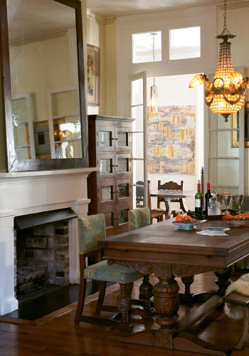 “Here” is a two-story 1867 home on Lenwood Boulevard, its façade hung with wide double porches and punctuated with towering French doors surmounted by transoms. It once served as a U.S. Army hospital before being divided in half to create two dwellings. Today, the front door opens into a wide hall and spacious stairwell, off of which smaller rooms cluster two deep. “This place just loved us from the minute we stepped in,” says Kim. My now-brother-in-law was our agent, and he asked the seller if it was haunted (it’s not) because otherwise, why in the world was he selling it.”