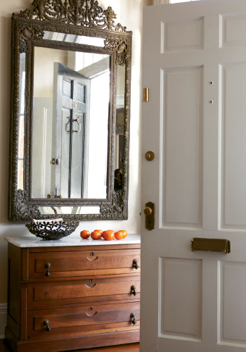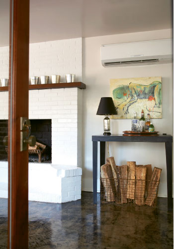 The recycling continued after the courtyard was dismantled and tradesmen created interior arches in the guesthouse with the cast-off bricks. Huge glass doors were installed downstairs, opening onto an outdoor room furnished with a Philippe Starck sofa and chair. Inside, some of Alex’s old bachelor furniture found a new lease on life when Kim discovered it was perfect for the space.