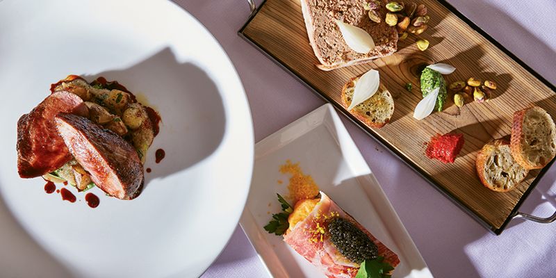 (Left to right) Broken Arrow Axis venison, inspired by Native American cooking techniques and ingredients; a modern take on the Southern grilled cheese; a nod to Europe with veal pâté.