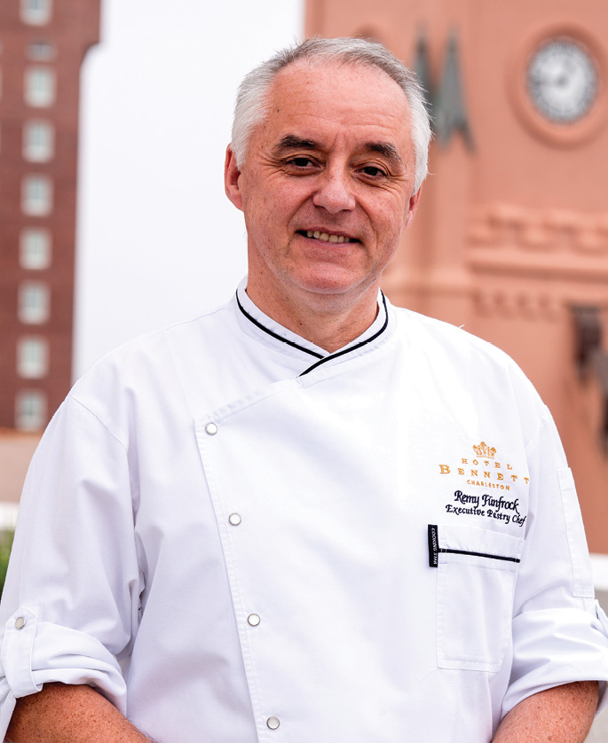 Award-winning pastry chef Rémy Fünfrock arrived in the Lowcountry in 2014, but his illustrious career began in Lyon, France, where he was born and raised. After attending culinary school at Lycée Jean Rablais, Fünfrock continued his studies apprenticing with famed pâtissiers Jacques Frery and Pierre Hermé, as well as master chocolatier Pascal Brunstein. After honing his ice cream skills at Bechard, a celebrated Provençal confectioner, Fünfrock went on to work at a number of renowned world-class restaurants and hotels across Europe and the States (such as Daniel Boulud’s DANIEL in New York City, The Broadmoor Hotel in Colorado Springs, and Roger Vergé’s Moulin de Mougins in Côte d’Azur). A warmer year-round climate eventually lured the Frenchman to America’s southern coastline, and after a tenure at The Sanctuary at Kiawah Island, Fünfrock relocated to Charleston. He joined Hotel Bennett as executive pastry chef in 2019, where his confections are served in champagne bar Camellias, restaurant Gabrielle, and French bakery La Pâtisserie.