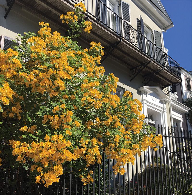 Rambling senna is a plant of many personalities, affirms Kellen Goodell, a horticulturist with the Charleston Parks Conservancy. If left to its own devices, it sends up multiple stalks that reach six to 12 feet tall, arching this way and that. You may see it cascading over fences or leaning on neighboring shrubs.