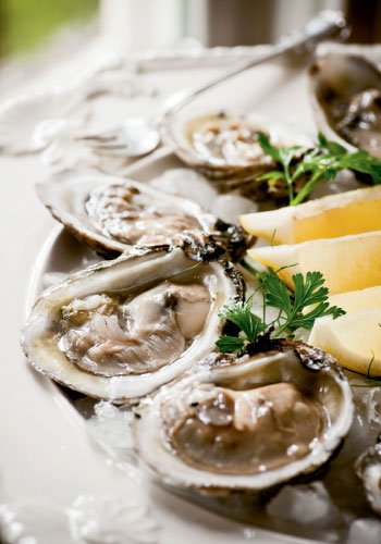 John washes the oysters purchased from Crosby’s Seafood before passing them to his brother, who with the skill of a cat burglar easily unlocks a dozen or so. Brackish, mild, and buttery, the oysters contrast nicely with the sweet heat of the pepper jelly. Since they’ve opted for less expensive crackers, greens, and turkey, the Stehlings splurge on the selects and a bottle of sparkling wine to accompany the appetizers. “A glass of champagne and a couple of oysters go a long way to making you feel like you’re putting on the ritz,” says Robert.