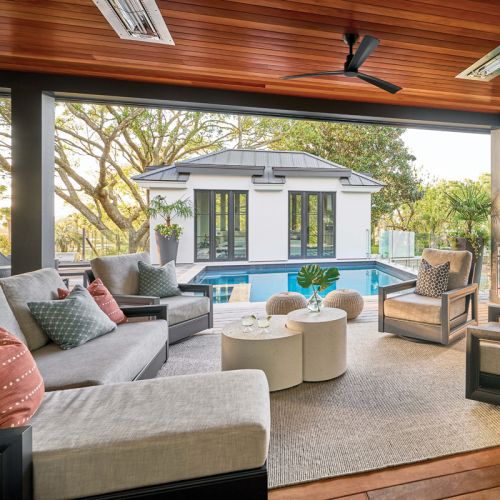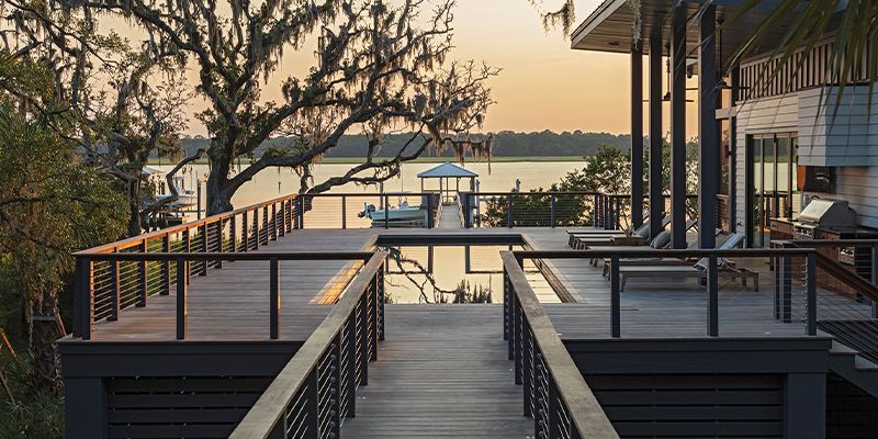 The modern riverside retreat on James Island blurs the lines between indoors and out