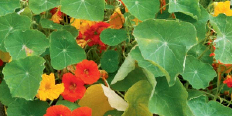 Plant nasturtium seeds this month for a punch of color in the garden and a peppery bite on the plate