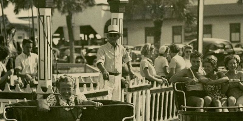 “The Whip” (pictured here circa-1937) at “Folly’s Playground,” a beachfront amusement park nestled between the...