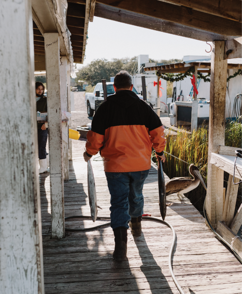 Mark and Kerry at Geechie Dock, where they launched Abundant Seafood’s Community Supported Fishery in 2010. Mark was among the first wave of fishermen to create a seafood membership plan that allows individuals to pay for quarterly allotments of fish, available for pickup twice each month.