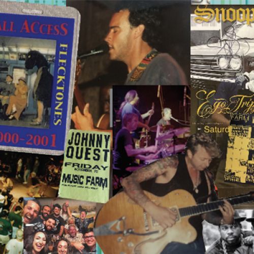 (Clockwise from above left) Darius Rucker, Hootie & the Blowfish; Rick Miller, Southern Culture on the Skids; Edwin McCain playing with Uncle Mingo; Kevin Wadley (center), Carter McMillan (far right) and friends with Cracker in the band room at their last show as owners in 1998; The Archetypes.