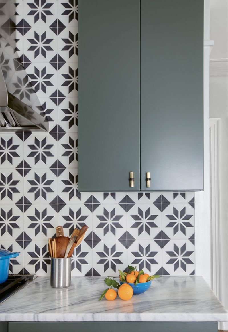 WHERE THE MAGIC HAPPENS: Thanks to the removal of a wall between the kitchen and living room, cooking for guests is no longer claustrophobic. The refreshed space makes good use of local materials, including the faucet from Molufs and painted concrete backsplash from Palmetto Tile. “Tile can really make a space without being too distracting,” Carrie notes. Quartzite countertops, flat-face cabinets, and hardware from Anthropologie add to the clean look, while a rotating display of objects provides the finishing touch. “We love the open shelves, and I find I’m always rearranging and shuffling things around; it is really inspiring to see fresh produce and artwork in the kitchen,” she continues.