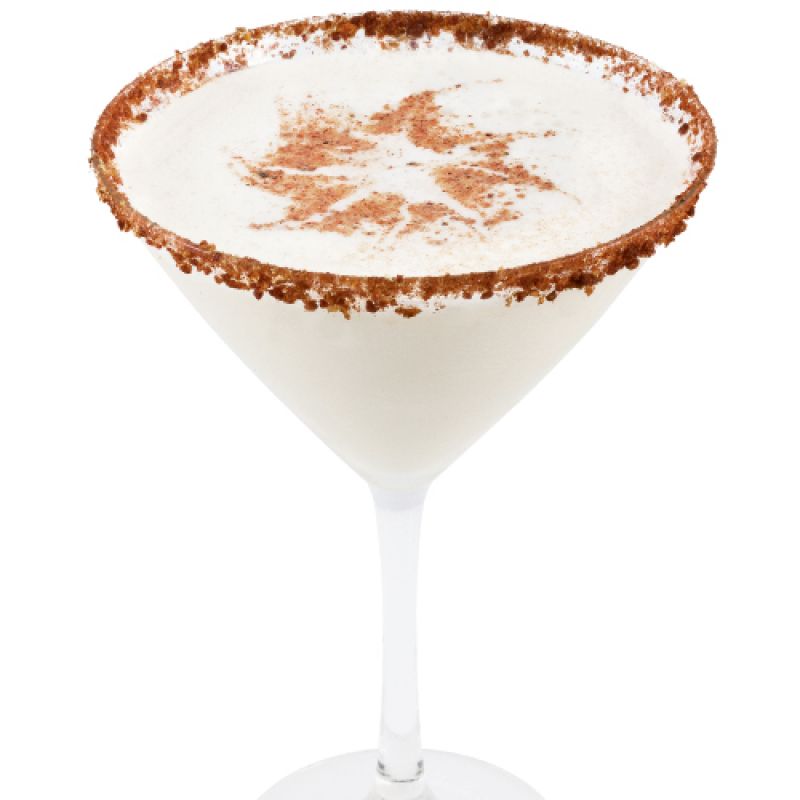 Pour eggnog and bourbon in mixing glass filled with ice. Rim martini glass with puréed pecans and cinnamon. Shake and strain into martini glass. Top with nutmeg.