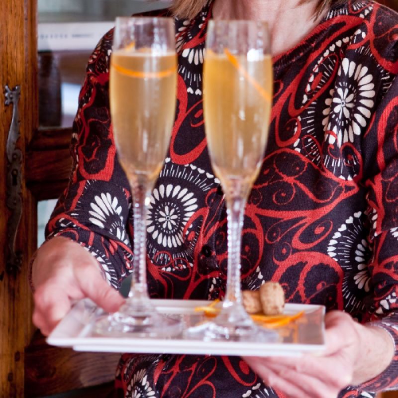 Muddle fruit with Maraschino liqueur in a pitcher. Add ice and Champagne and stir very gently. Strain into flutes. Garnish with orange peel and serve immediately.