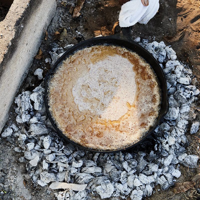 Preheat oven to 400 degrees. Add butter and lard to an 8-inch cast-iron skillet and place in oven until melted. Let it cool but not harden.