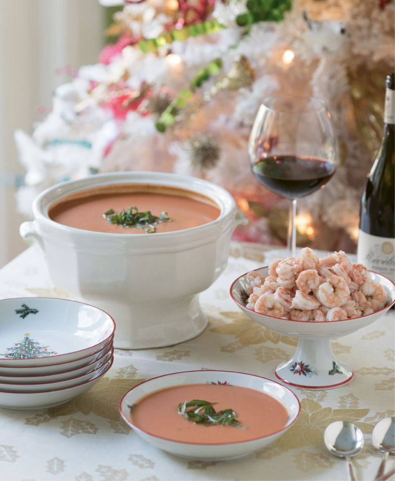 Place the flour in a small bowl and stir in five tablespoons of the chicken broth, blending them well to make a paste. Stir paste into the tomato mixture. Add remaining broth, stirring constantly to blend well, and simmer for 30 minutes, stirring frequently. Remove from heat and cool to room temperature. Wipe out the Dutch oven.