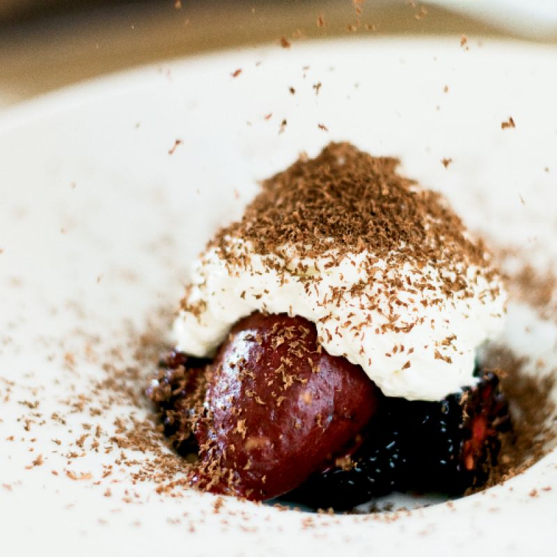 To serve: Divide the pint of blackberries between 6 bowls. Place a scoop of sorbet on top of the berries. Spoon a dollop of mousse on top the sorbet. Sprinkle dark chocolate overtop. Serve immediately.