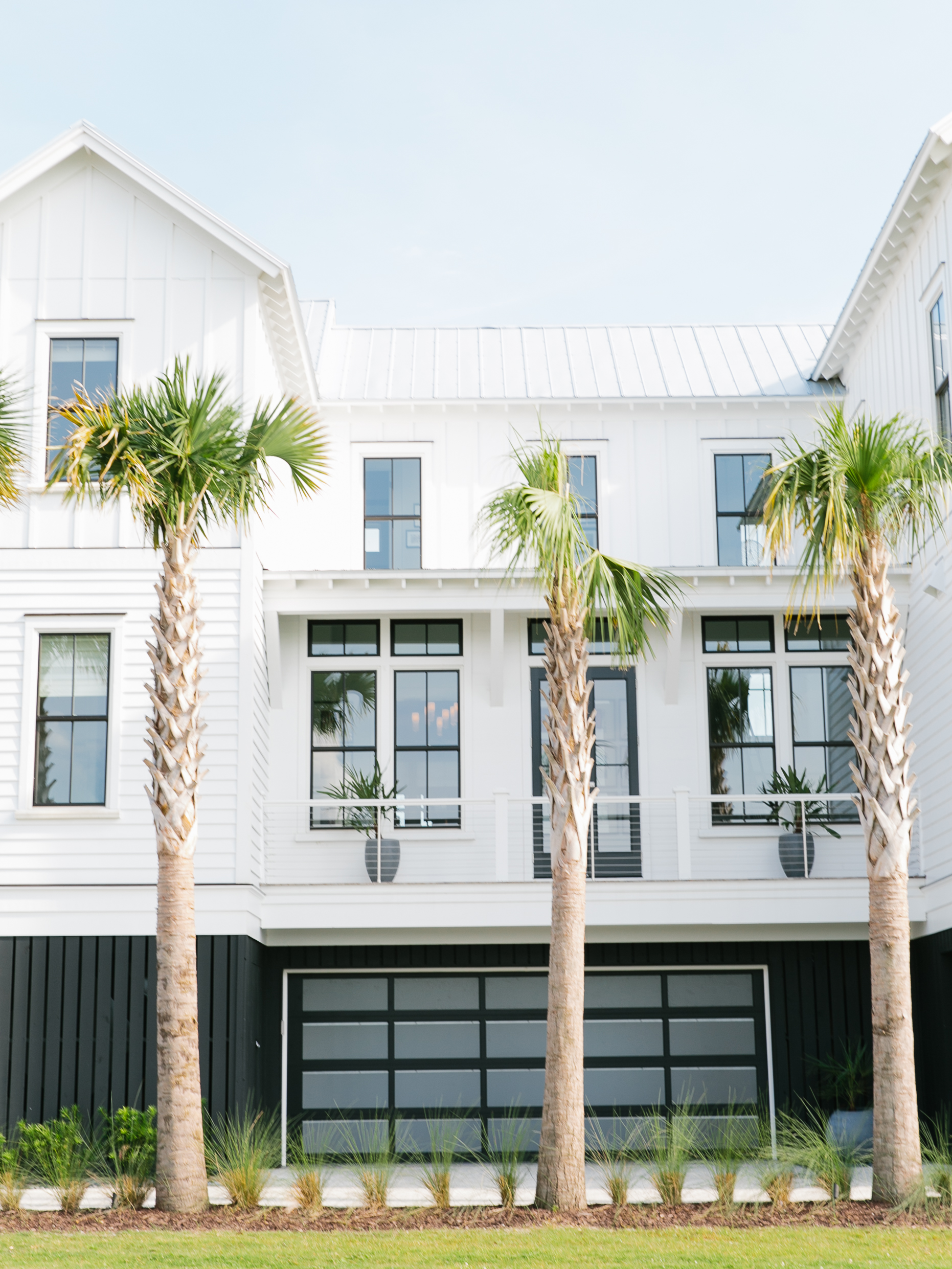 Melissa kicked things off by flexing her design muscles, sketching out her vision for the façade. The results have an undeniably coastal aesthetic. Composed of beachy materials, such as board-and-batten and corrugated tin, the house is elevated to keep high waters at bay. But thanks to a stark black-and-white color palette and shed roofing, it makes a modern statement, too. The mix of old and new creates an aesthetic Clarke refers to as “Lowcountry modern.” “The key is getting the balance, scale, and proportion historically correct, yet stripping away any of the unnecessary adornments,” he says.