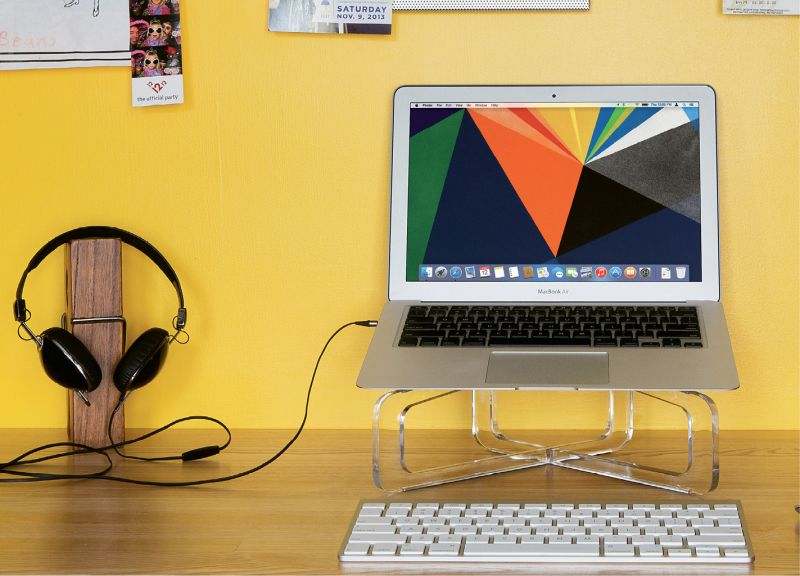 Since garnering national attention in 2010 with its BookBook iPad and iPhone cases that mimic antique leather-bound tomes, the firm has continued to up the design ante with Apple-exclusive auxiliary products that sit at the intersection of tech, fashion, and home décor. Some of its offerings feel like luxury apparel: napa-leather SurfacePads for phones and tablets now come in lavender and navy (“It’s the idea of changing your case to coordinate with your outfit,” says Leigh Ann). The TimePorter—a travel case, charging station, and display stand for the Apple Watch—looks more like a sunglasses case than a piece of tech support. Other items are akin to furniture, such as one laptop stand made from clear Lucite (shown above) and another available in hardwood finishes. The use of high-end materials marks a change in mind-set: “People are integrating technology into every aspect of their lives,” Leigh Ann says. “We started to wonder: why aren’t we making accessories that blend in better with people’s homes?”