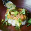 Finally, the chef prepares a spring chowder made with those reserved heads and bones as the base for a fragrant fish stock. Once the stock is strained, he adds the snappers’ scraps, plus an array of market-fresh vege-tables, for a dish suffused with seafood flavor that celebrates the season.